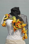 2010Deze sjaal heeft een zwarte basis. De bloem gaat een rond gat in de sjaal door, en komt zo naar voren, als een soort van knoop.