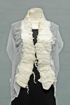 2009Witte zijde sjaal met een rand van gevilt wit gekruld schapenwol. De sjaal is op veel verschillende manieren te dragen.