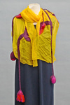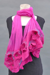 2009Witte zijde sjaal, met roze vilten bolletjes en gemêleerd roze vilt.