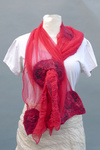 2010Deze sjaal heeft een rode basis. De bloem gaat een rond gat in de sjaal door, en komt zo naar voren, als een soort van knoop.In het hart van de bloem zijn echt zilveren kraaltjes verwerkt.